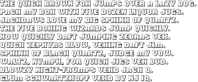 Should'veKnownShaded is most popular/used font in the State of USA. Project name of this font is Should'veKnownShaded. Personaly feel free to use © 1999 Ray Larabie. This font is freeware. Read attached text file for details. Info & updates visit www.larabiefonts.com. Donations gratefully accepted at www.larabiefonts.com/donation.html. Also visit my commercial type foundry at www.typodermic.com. This font was updated in 2004. but when you use this font commercially please contsct- © 1999 Ray Larabie. This font is freeware. Read attached text file for details. Info & updates visit www.larabiefonts.com. Donations gratefully accepted at www.larabiefonts.com/donation.html. Also visit my commercial type foundry at www.typodermic.com. This font was updated in 2004..
