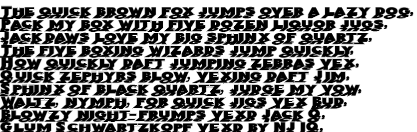 MirrorblacKOutline is most popular/used font in the State of USA. Project name of this font is MirrorblacKOutline. Personaly feel free to use Copyright \251 2002, m klein fonteria. All rights reserved. but when you use this font commercially please contsct- Copyright \251 2002, m klein fonteria. All rights reserved..