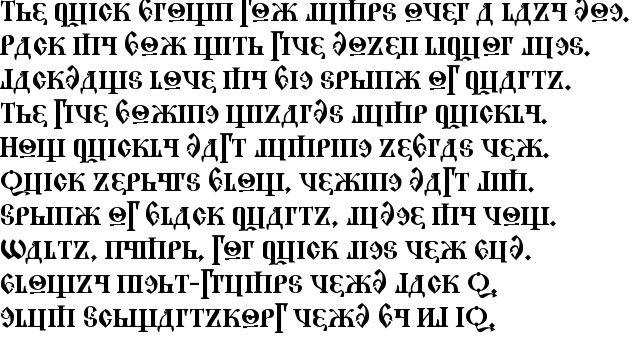 ✓ A mock old style Russian language font.This font was created by Bolt Cutter Design, Denver Colo. USA