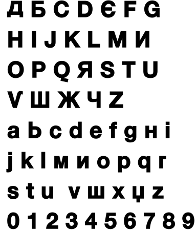✓ Die erste PostScript-Schrift, die kyrillische & lateinische Schriftzeichen verbindet. Ein Joke-Font von MK, 25.3.92, vs. 11.2003