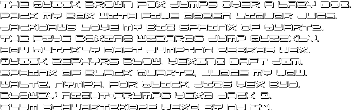 QuickGearShadow is most popular/used font in the State of USA. Project name of this font is QuickGearShadow. Personaly feel free to use 2003 Iconian Fonts - www.iconian.com but when you use this font commercially please contsct- 2003 Iconian Fonts - www.iconian.com.