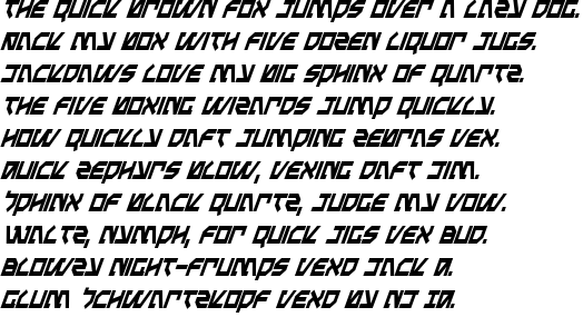 MetalStormCondensedItalic is most popular/used font in the State of USA. Project name of this font is MetalStormCondensedItalic. Personaly feel free to use 2008 Iconian Fonts - www.iconian.com but when you use this font commercially please contsct- 2008 Iconian Fonts - www.iconian.com.