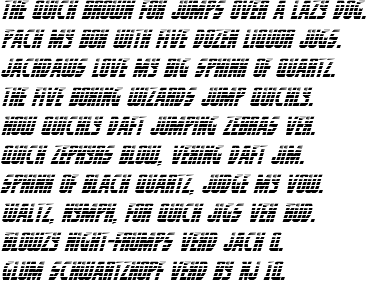 ProwlerGradientItalic is most popular/used font in the State of USA. Project name of this font is ProwlerGradientItalic. Personaly feel free to use 2011 Iconian Fonts - www.iconian.com but when you use this font commercially please contsct- 2011 Iconian Fonts - www.iconian.com.
